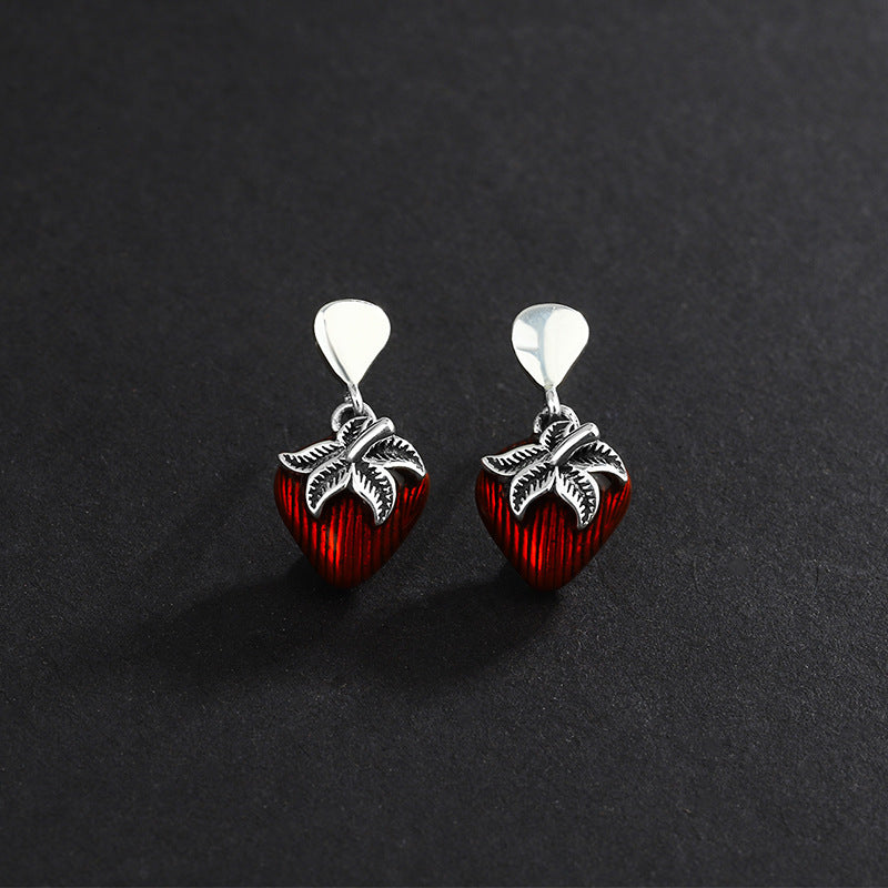 S925 Sterling Silver Retro Simple Kaedo Drip Glue Strawberry Earrings