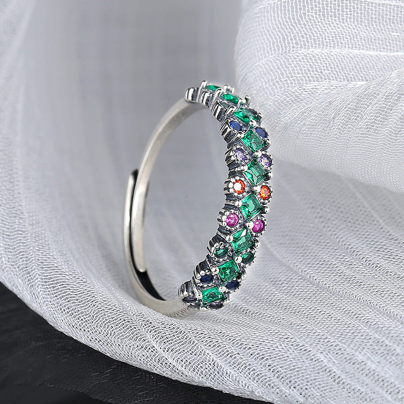 S925 Sterling Silver Color Diamond Ring Small Design Green Zirconium