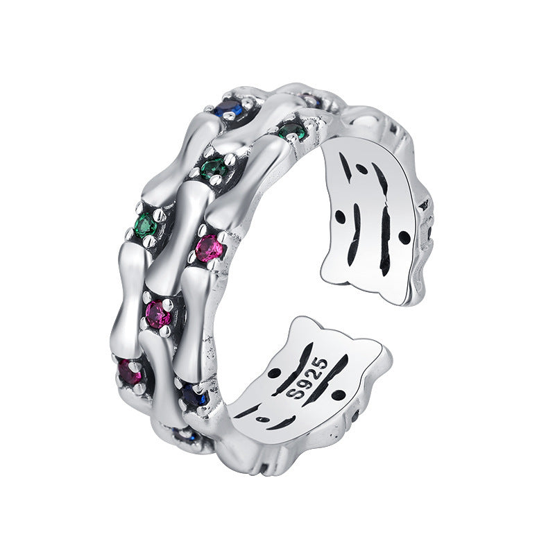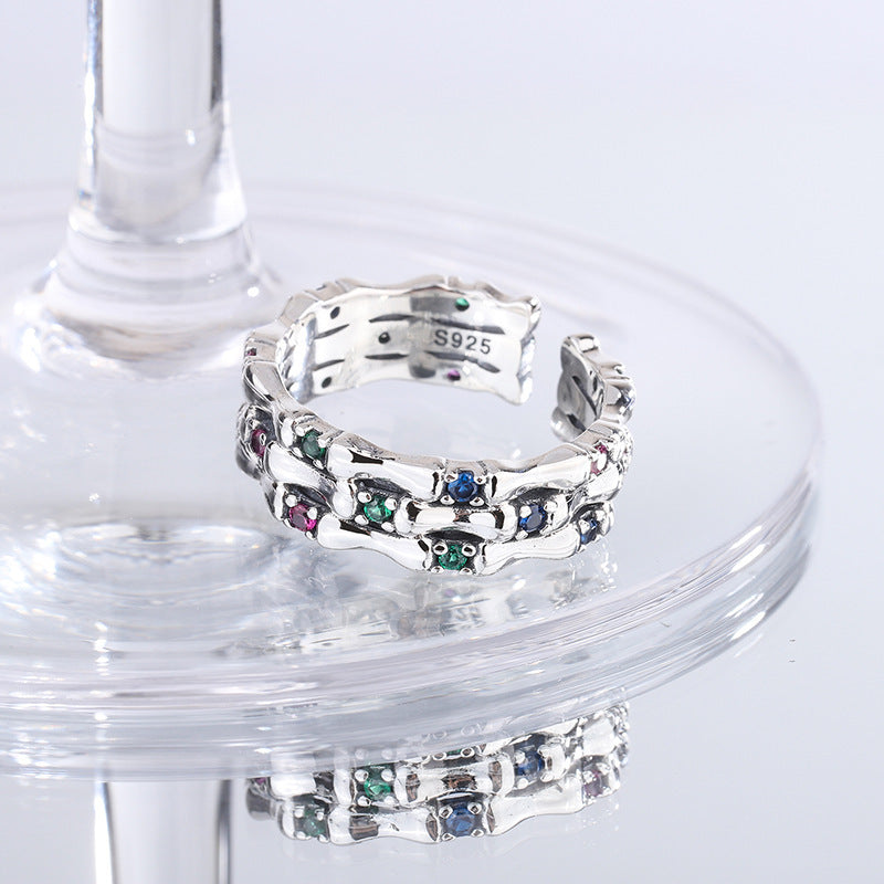 S925 Sterling Silver Color Diamond Zircon Bamboo Ring