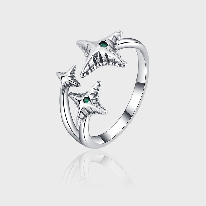 Sterling Silver Niche Design Meteor Moonlight Stone Irregular Texture Ring