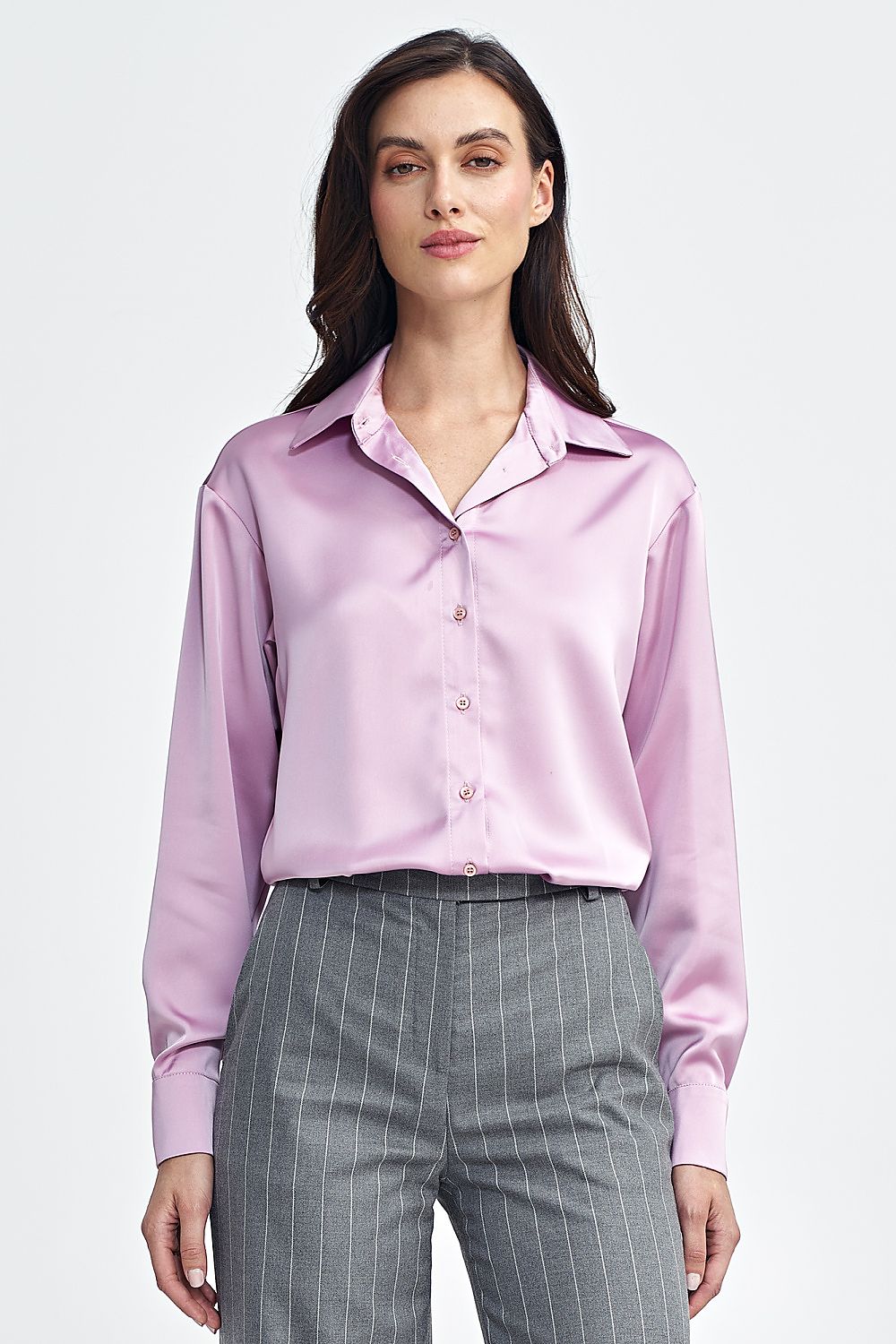 Elegant Satin-Effect Body with Classic Collar and Long Sleeves