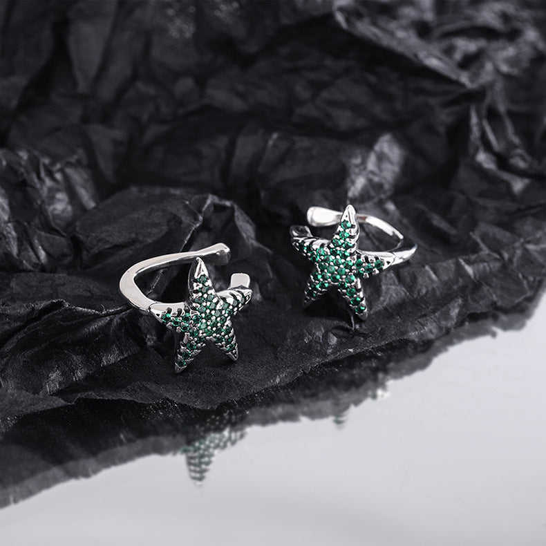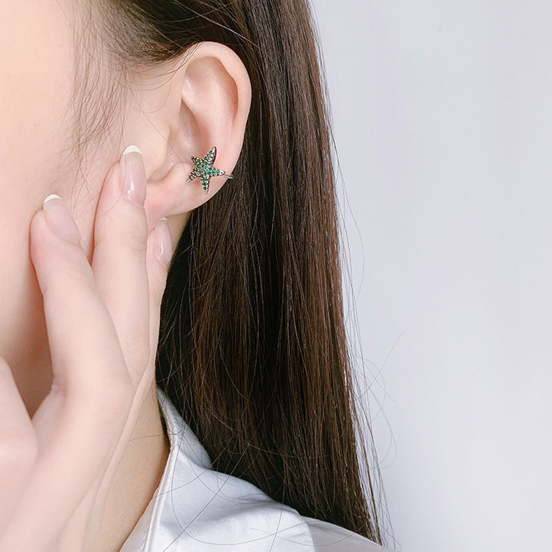 925 Silver Earless Earrings Female Full Diamond Stars Lucky Starfish Earrings