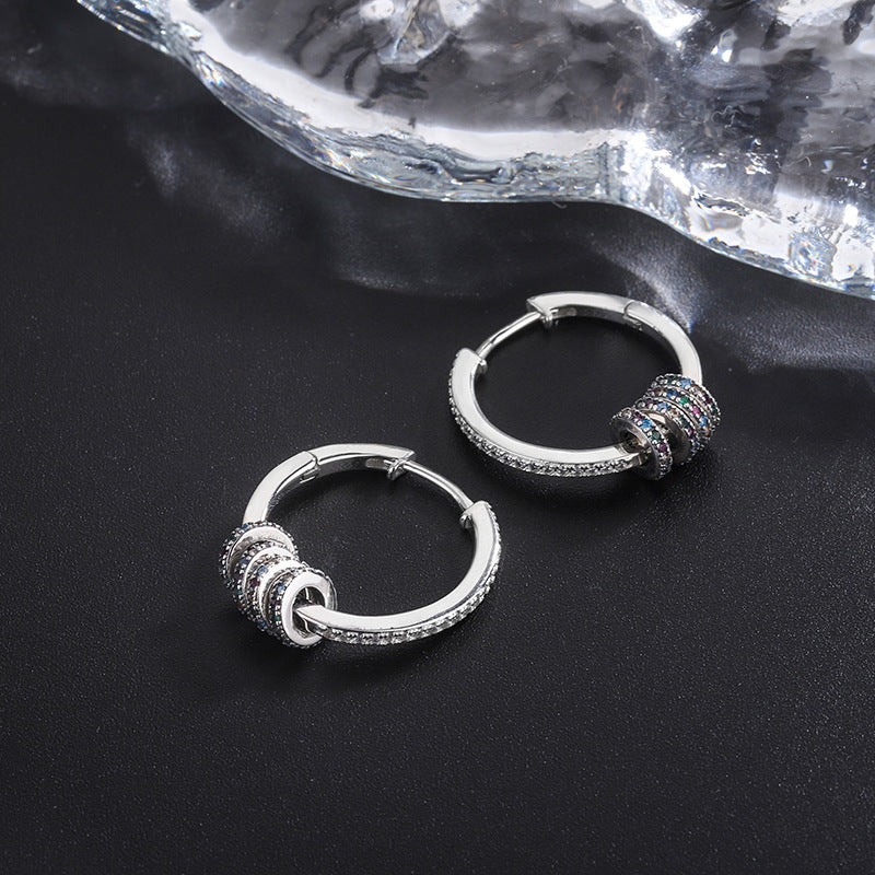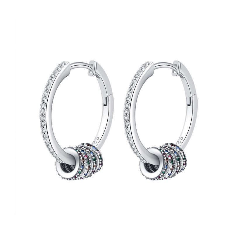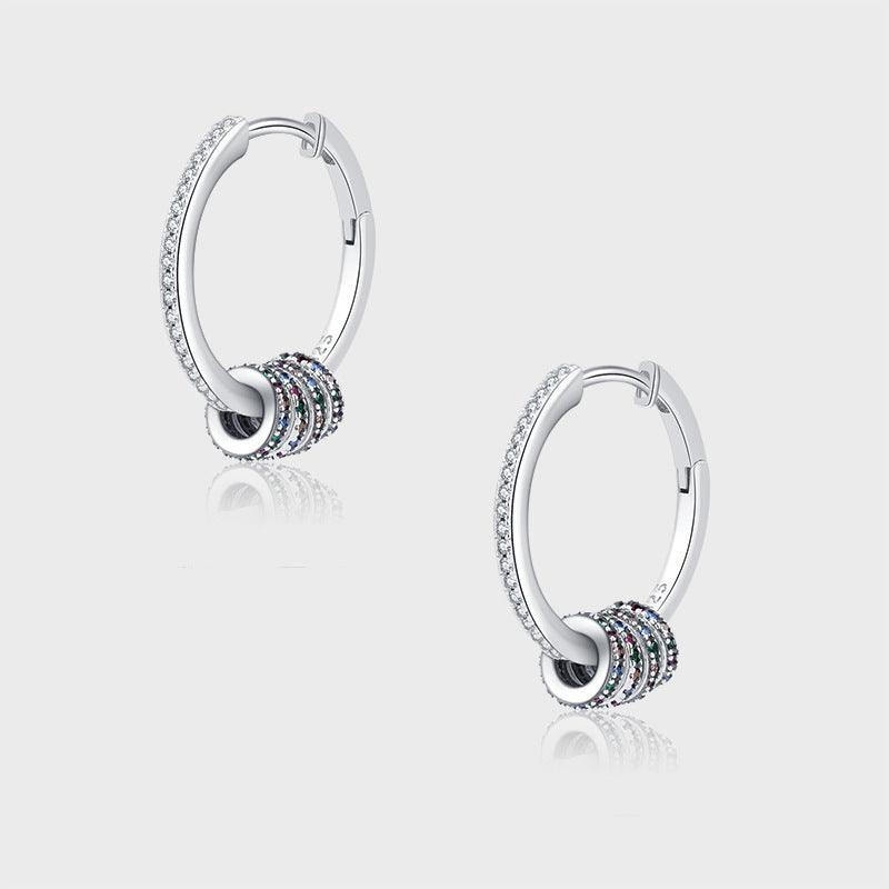 S925 Sterling Silver Colorful Small Circle Zircon Ring Earrings