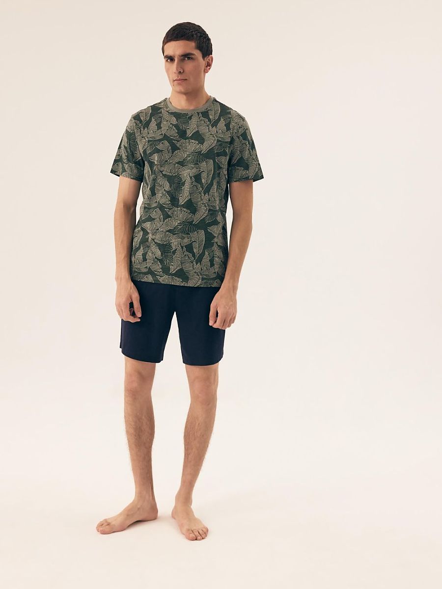 This pajama is a proposal for men who value comfort and convenience during sleep. Made of soft and pleasant to the touch fabric, the pajama is extremely comfortable and ensures a relaxing sleep. The t-shirt with a fashionable camouflage print adds a masculine character and style to the pajama. The classic, semi-circular neckline and short sleeves provide freedom of movement and comfort during sleep. The shorts are the perfect solution for warm nights. The comfortable elastic waistband ensures a perfect fit to the silhouette. The shorts do not have pockets, which ensures even greater comfort during sleep. Pajamas made of soft and breathable fabric are the perfect choice for warm nights. It allows the skin to breathe and ensures a comfortable sleep. The pajama is packed in an elegant box, making it an ideal gift for a loved one. It is a perfect gift idea for birthdays, name days, holidays or any other occasion. This pajama is a must-have in every man's wardrobe who values comfort and convenience during sleep. Its masculine look and practical details make it perfect for many nights.