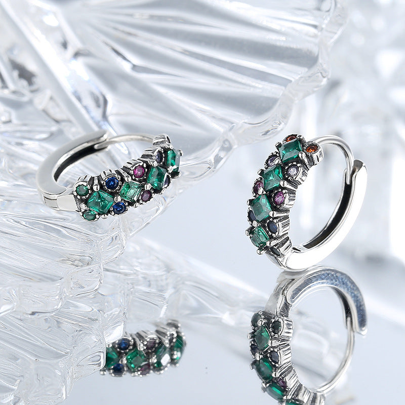 S925 Sterling Silver Inlaid Green Zircon Earrings Small Number Simple And Versatile Colorful Diamond Earrings