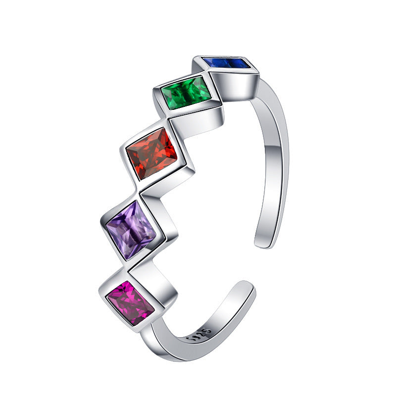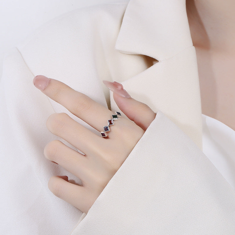 Small Design Geometric Rainbow Sterling Silver Inlaid Color Zircon Ring