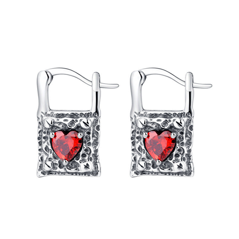 Sterling Silver Earrings Vintage Silver Lock Earrings Inlaid With Heart-shaped Zircon S925 Silver