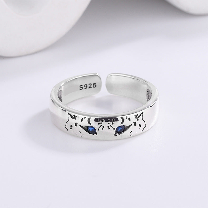 Vintage Blue Eyes 925 Silver Guard Wilderness Snow Leopard Couple Ring