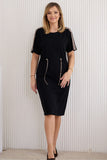 Very feminine and comfortable dress made of knit fabric. Designed according to the brand's principles, with mature women in mind. The appropriate length, 2-3 cm below the knee for a height of about 166-168 cm, kimono top with drooping sleeves, adjustable waist, aesthetic finishes in the form of beige piping and metal stoppers, subdued colors and soft and pliable fabric with a weight of about 240 gm2. All this makes the dress perfect for larger sizes.